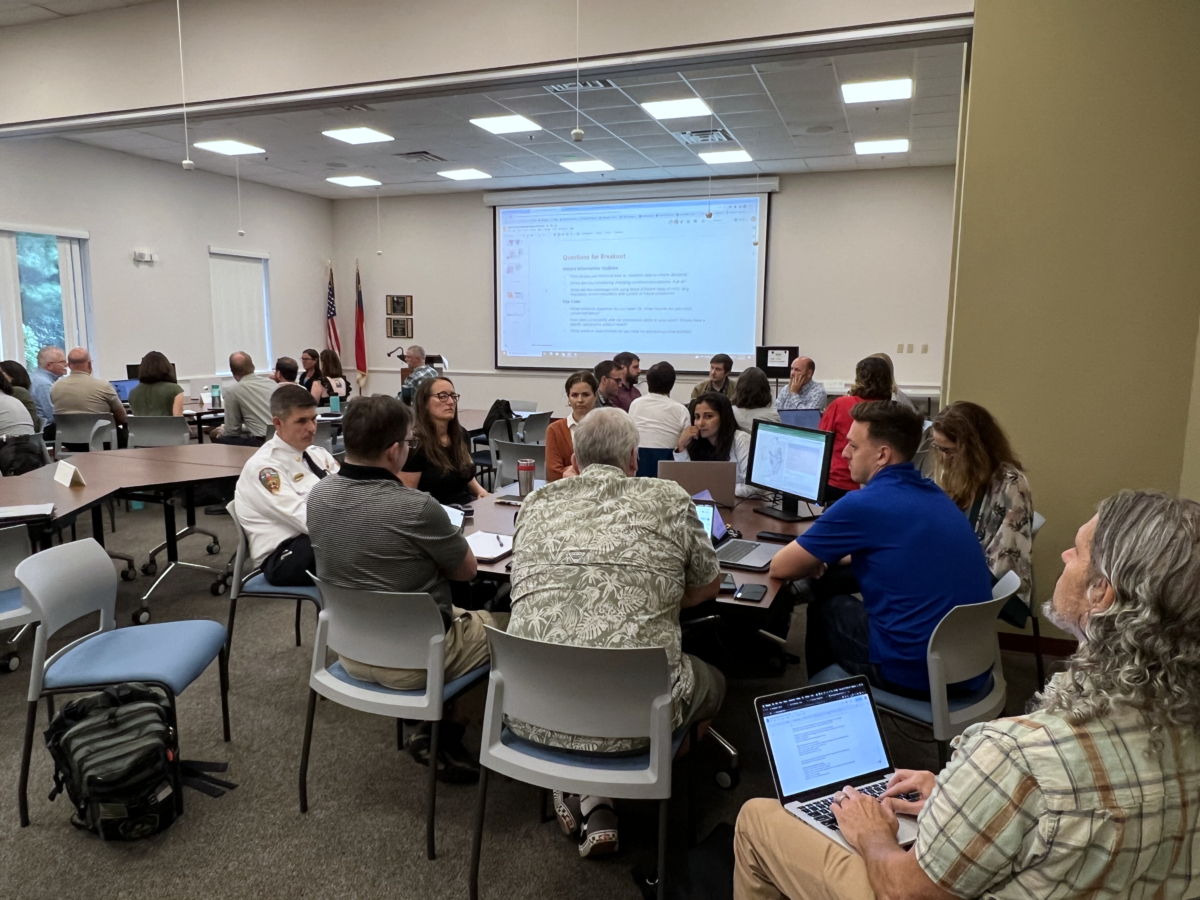 The Land of Sky Regional Council (LOSRC) hosted its second user meeting for AccelAdapt on August 30th in Asheville, North Carolina. The meeting was co-hosted by Fernleaf and UNC Asheville’s NEMAC (National Environmental Modelling and Analysis Center), and drew participants from various counties, towns, and departments within the Council, from planning, GIS, emergency management, public works and stormwater departments as well as floodplain managers.